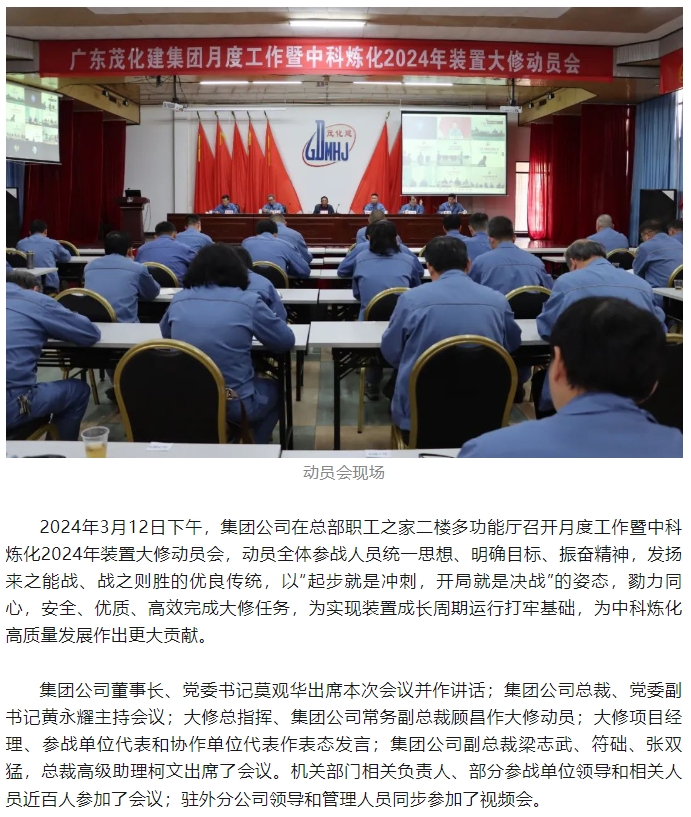勠力同心擂響戰(zhàn)鼓 千軍萬馬出征大修——集團(tuán)公司2024年中科煉化裝置大修動(dòng)