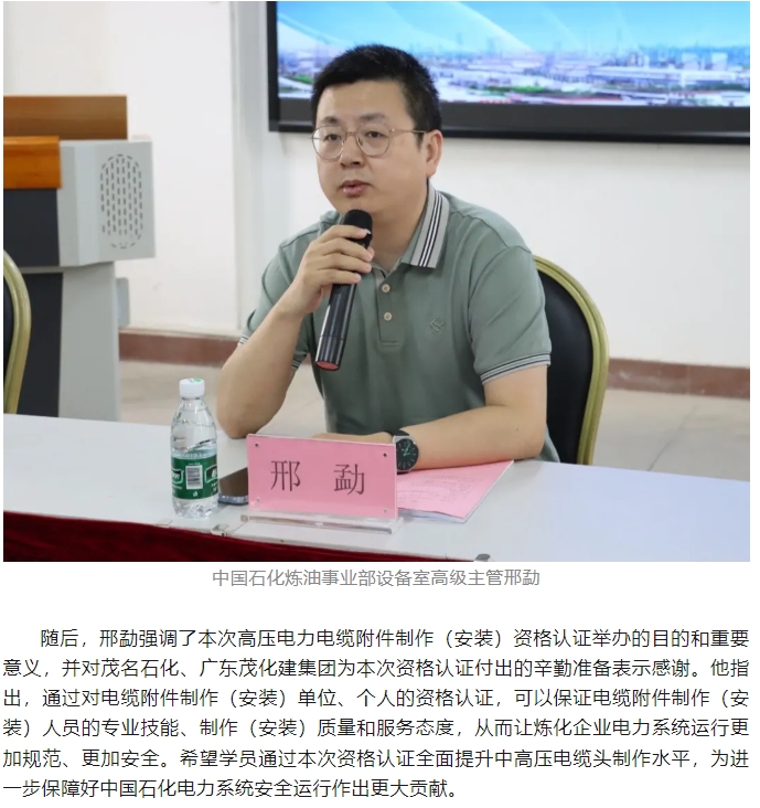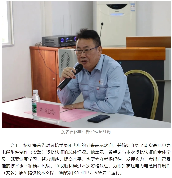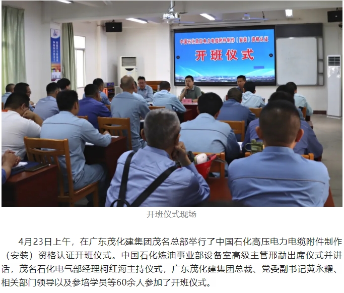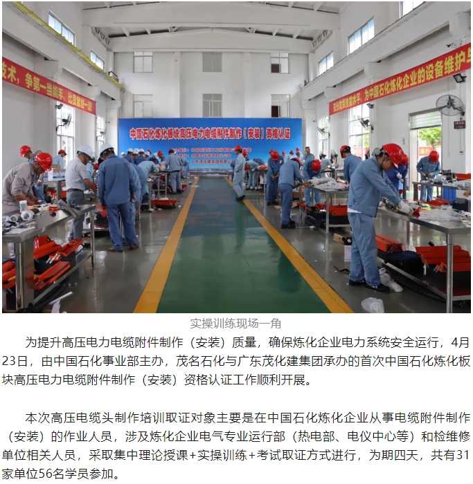 首次中國(guó)石化煉化板塊高壓電力電纜附件制作(安裝)資格認(rèn)證在茂名順利舉行