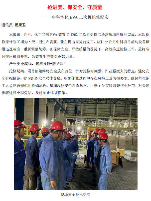 中科煉化 EVA 二次機搶修紀(jì)實