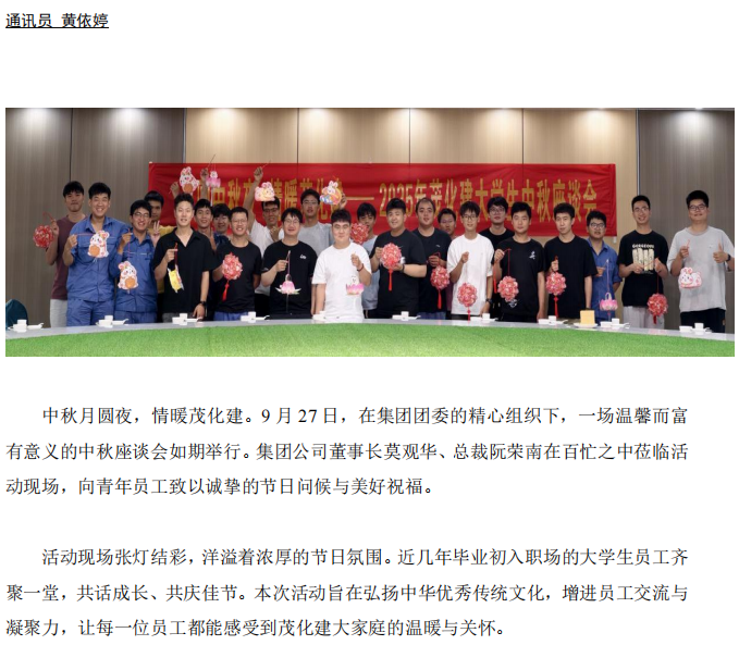 月圓中秋夜 情暖茂化建——2025 年集團大學生中秋座談會圓滿舉行
