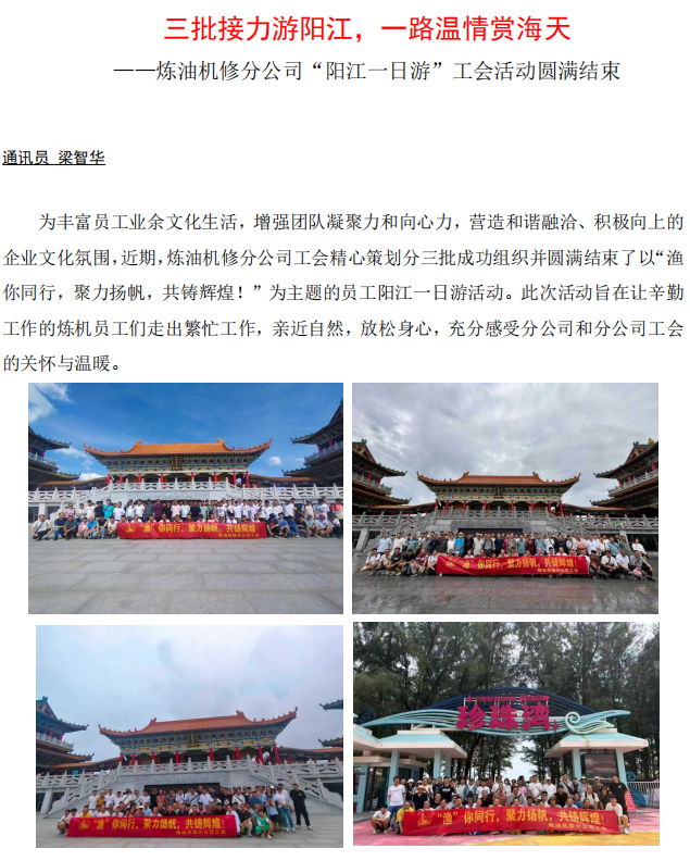 煉油機(jī)修分公司“陽江一日游”工會(huì)活動(dòng)圓滿結(jié)束