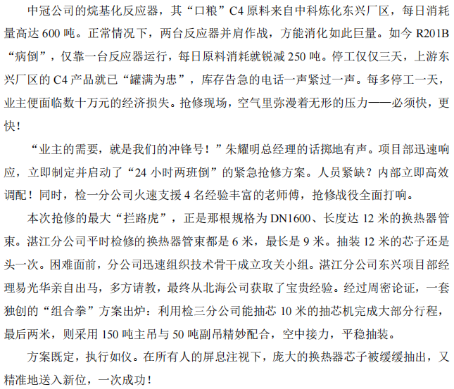 湛江分公司中冠項目部搶修烷基化反應器紀實