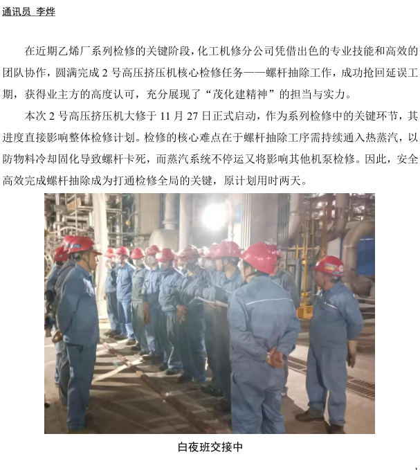 創(chuàng)新方法破解檢修難題,化工機修分公司三小時攻堅獲贊譽